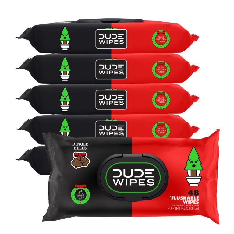 DUDE Wipes – Flushable Wipes for Adults – 6 Pack, 288 Wipes – Dingle Bells Extra Large Wet Wipes with Crisp Pine, Balsam, and Other Jolly Scents