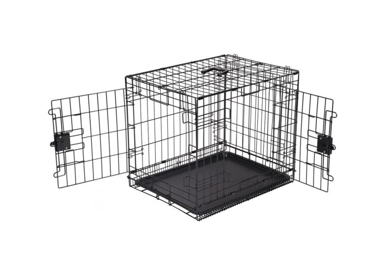 Amazon Basics – Durable,Foldable Metal Wire Dog Crate with Tray, Double Door, Divider, 24 x 18 x 20 Inches, Black